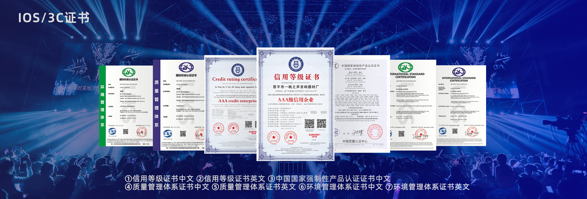 一帆音響已獲得質(zhì)量管理體系證書,環(huán)管理體系證書,AAA信用證書,各種產(chǎn)品檢測(cè)報(bào)告等不同的證書。可提供投標(biāo)資質(zhì)的資料參與投標(biāo),助力拿下大工程